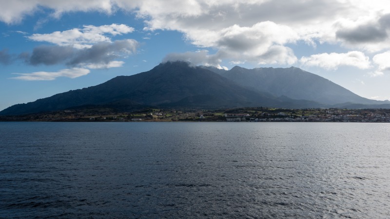 Blick zur Insel Samothraki von der Fähre