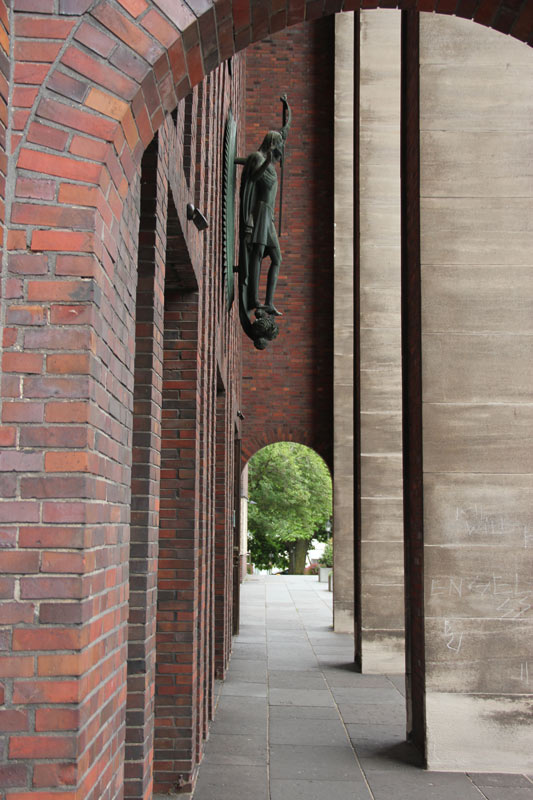 Plastik am Eingang der katholischen Pfarrkirche St. Mariae Geburt in Mülheim