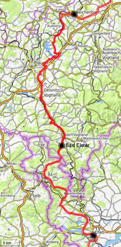 dann um Plauen herum nach Oelsnitz und dann nach Bad Elster. Tags