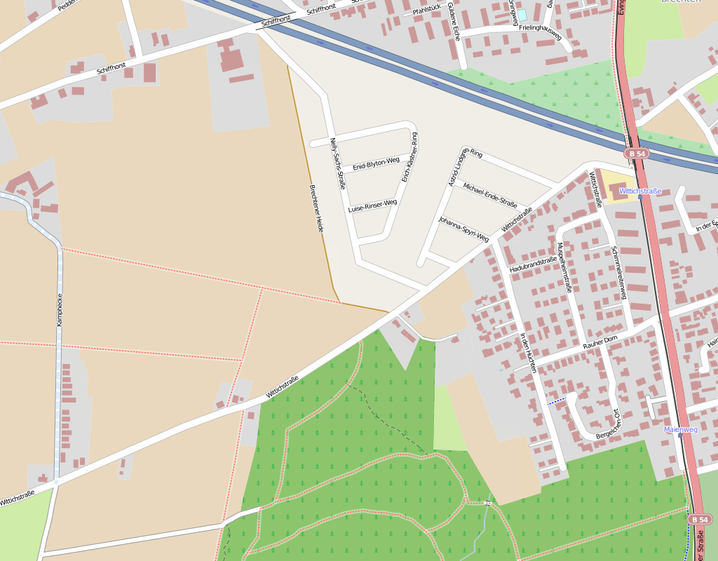 Im Gebiet nördlich der Wittichstraße - Brechtener Heide - findet die