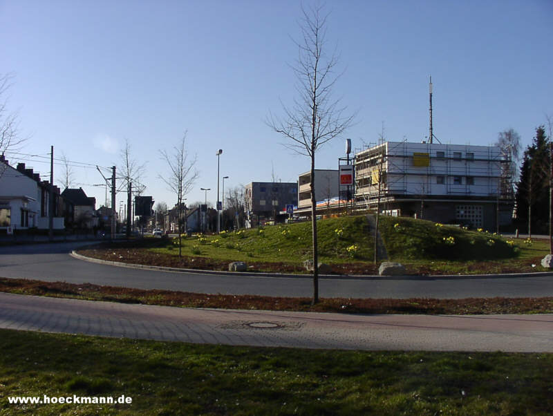 In dem Haus mit der Antenne befindet sich die Gaststätte Lennartz, dahinter sind Geschäfte und die Banken - März 2003