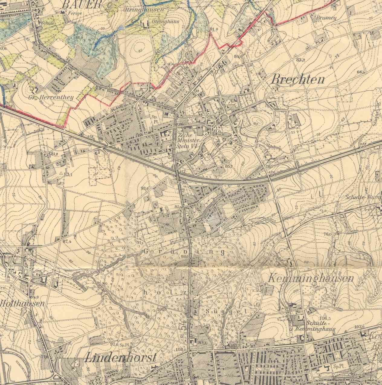 1886 auf der Karte ist das Gebiet vom Süggel bis zur Straße