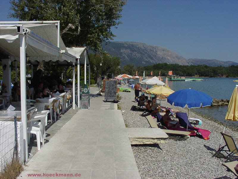 Restaurants und Kiesstrand an der Bucht von Dasia - 2007