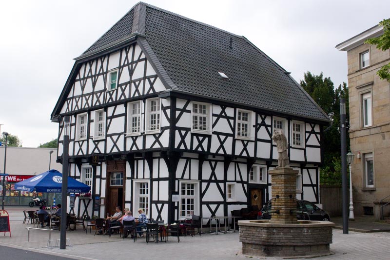zeigt es noch die westfälischen Farben: Weiß an den Gefachen, Schwarz an