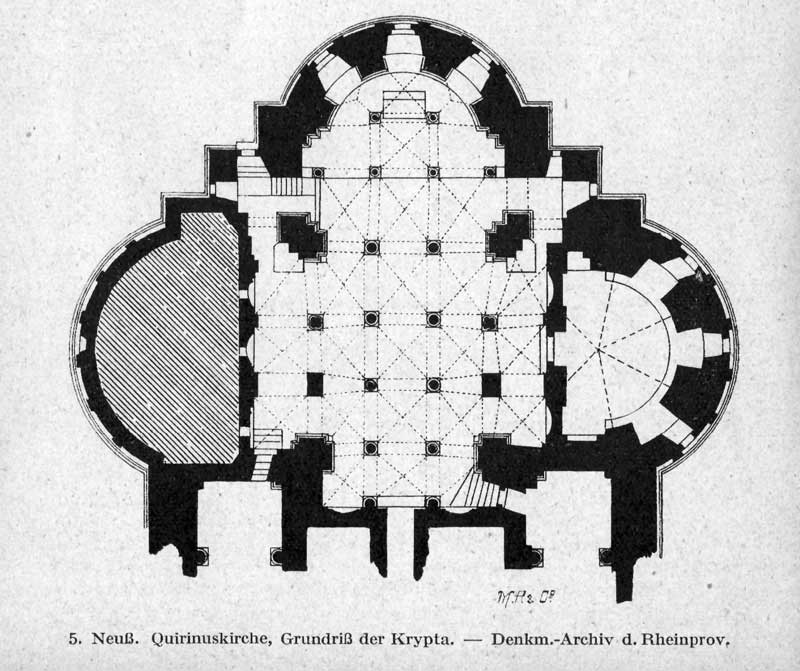 quadratischen Turmes gegen die drei runden Apsiden und den