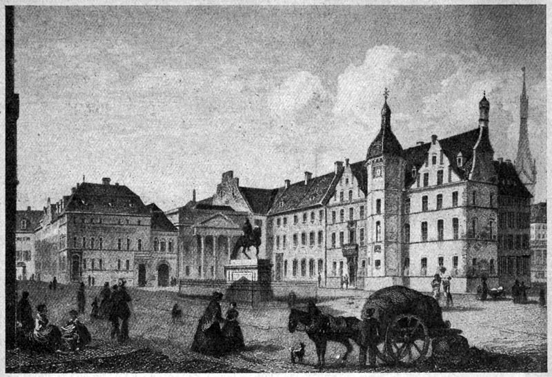 früheres Theater (um 1850); rechts Blick auf Burgplatz und Lambert