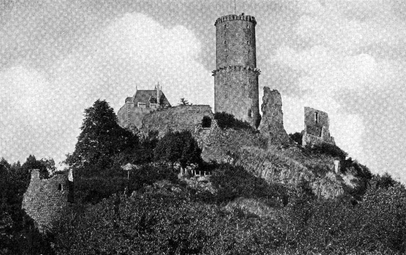 begann mit dem Ausbau des mächtigen Bergfrieds, der aber erst im 14.