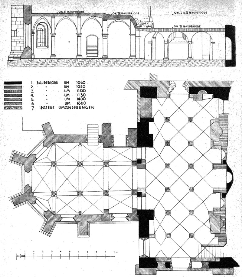 sich von dem Gründungsbau nur der westliche Teil der Krypta und die