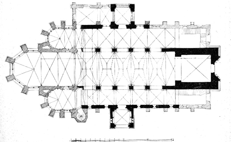 Breite unter dem Querschiff. Die 21 Gewölbefelder werden von je 6