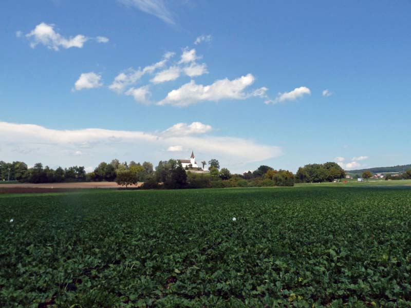 Die Bergkirche in der deutschen Exklave Büsingen, die rund 800 Meter vom Rest der Republik entfernt liegt und mit BÜS wohl eines der seltensten deutschen Nummernschilder haben.