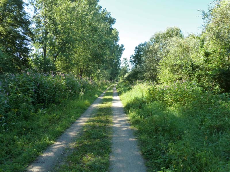 Anfahrt zum Rhein durch den Auenwald bei Goldscheuer