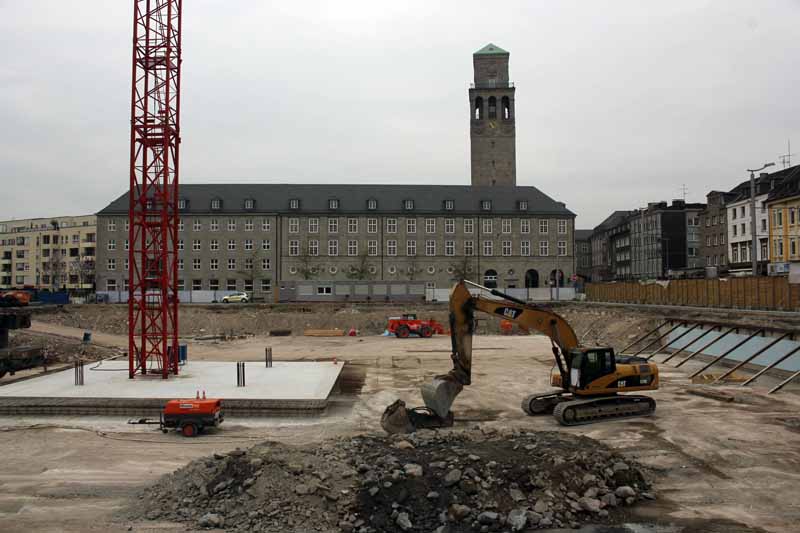 Baustelle des Stadtquartiers Schloßstraße vor dem Rathaus in Mülheim