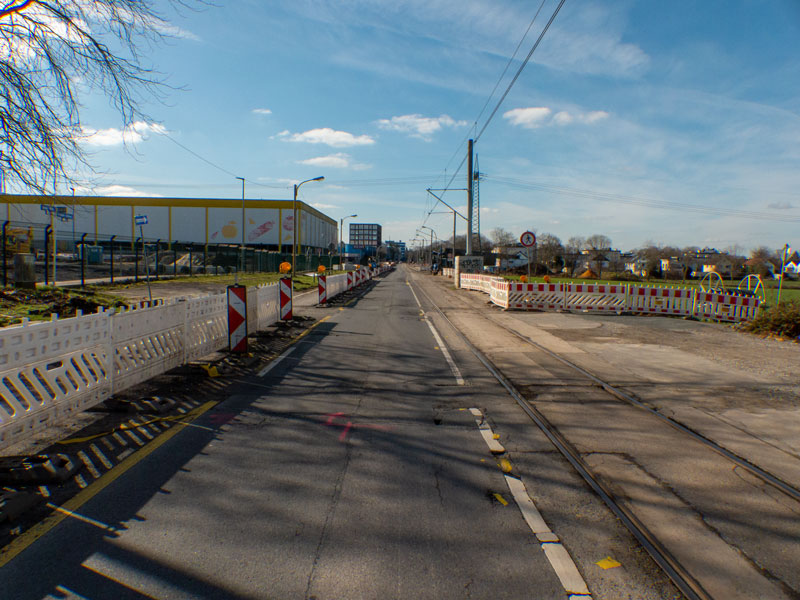 Blick vom Asselner Hellweg auf Rewe und Tedi