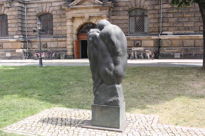 Bronzeskulptur „Großer trauernder Mann“ vor dem Albertinum von Wieland Förster