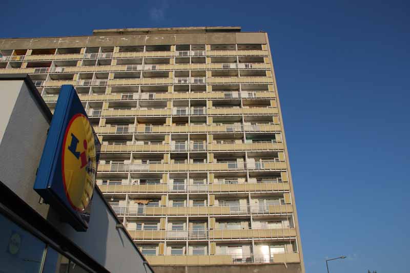 Wohnhaus älteren Datums und neuer Einzelhandel