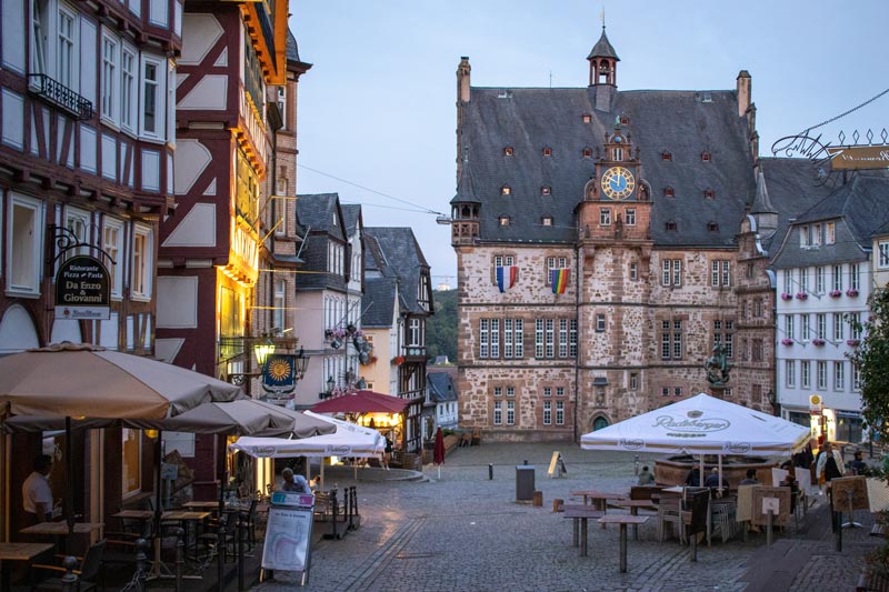 Nach fast 70 Kilometern kamen wir abends in mrburg an, wo wir direkt in der Altstadt, wenige Meter vom Rathaus übernachteten. Radtour entlang der Lahn - Juli 2020