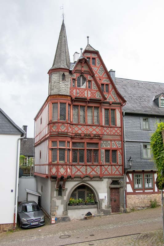 Dieses Haus stammt aus der zweiten Hälfte des 19. Jahrhunderts und ist benannt nach seinem Erbauer Prof. Grimm. Radtour entlang der Lahn - Juli 2020
