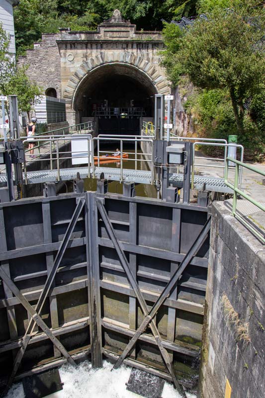 Schleuse am Weilburger Schiffahrtstunnel Radtour entlang der Lahn - Juli 2020