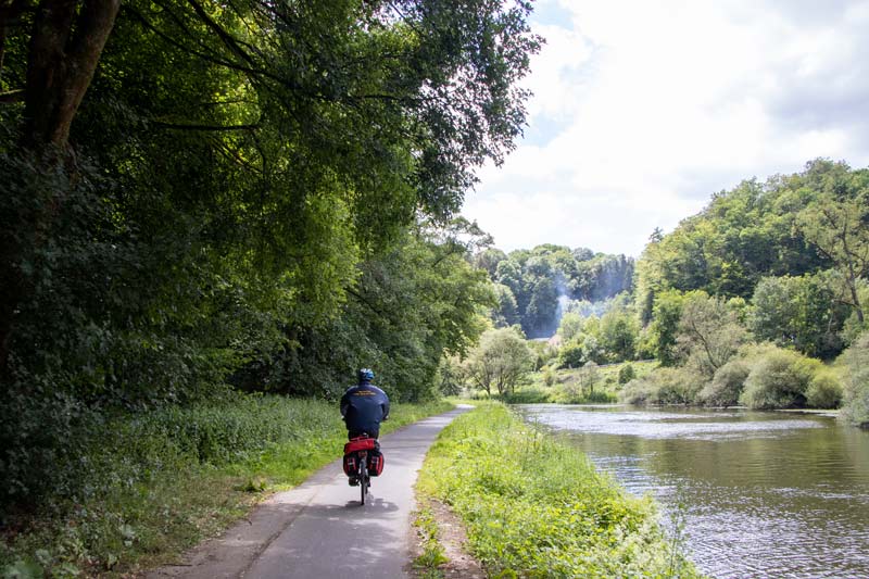 Wieder einer der sehr schönen Abschnitte direkt am Ufer entlang. Radtour entlang der Lahn - Juli 2020
