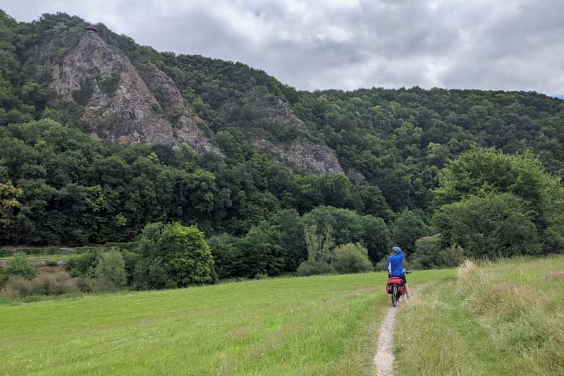 Durch die herrliche Landschaft führt ein schmaler Pfad, der aber sicher befahren werden kann. Radtour entlang der Lahn - Juli 2020