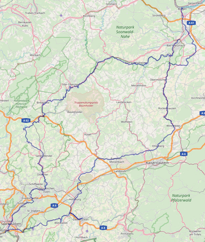 Radtour entlang der Nahe zur Saar und zurück durch die Pfalz nach