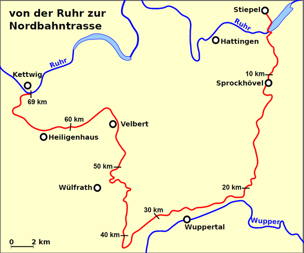 Radtour von Bochum Stiepel zur Nordbahntrasse und zurück zur Ruhr nach Essen-Kettwig