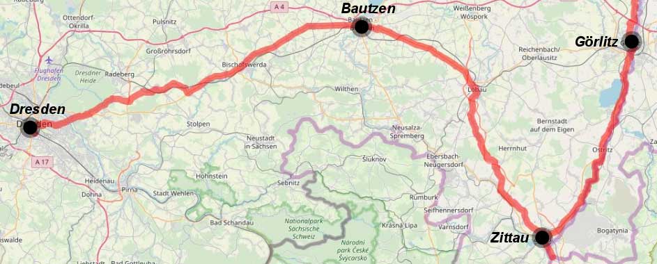 nach Bautzen waren es 75 km. Und von Bautzen nach Dresden waren es