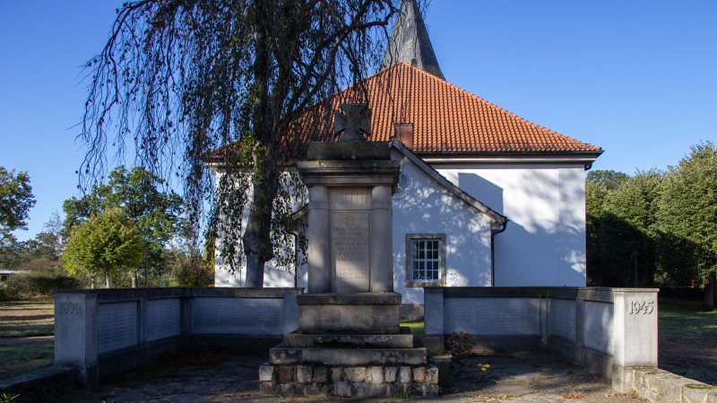 Kriegerdenkmal und Kirche in Martfeld