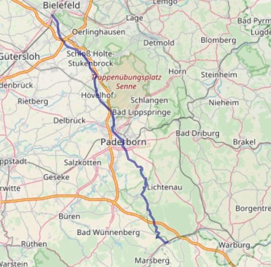 Karte der Radtour von Westheim nach Bielefeld-Brackwede