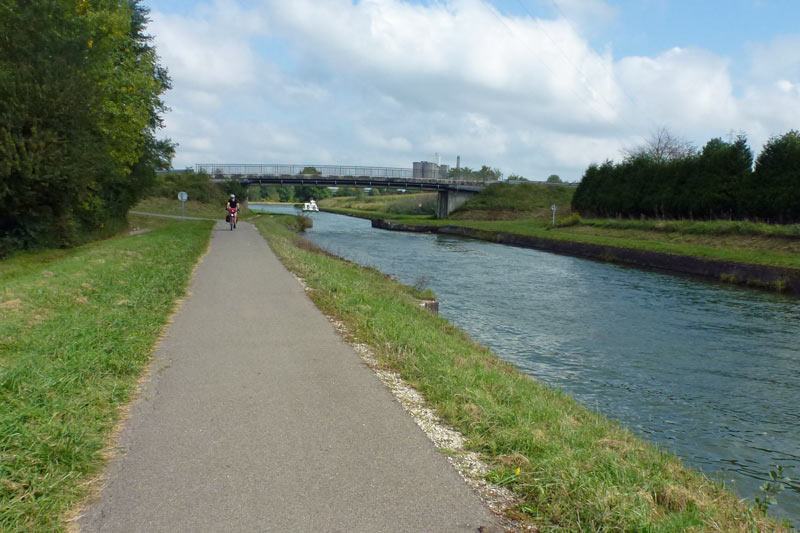 vorangegangenen Kilometern ohne den asphaltierten Radweg am Kanal