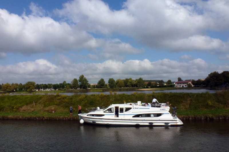 Neben dem Hausboot, von denen wir vorher schon viele gesehen hatten, sieht man auf diesem Bild auch den Étang de Gondrexange. - Radtour von Straßburg nach Trier