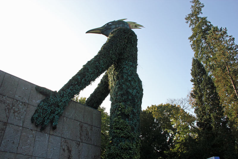 Neben dem Keramikpuzzle steht der 14 Meter hohe Erdgeist von André Heller.