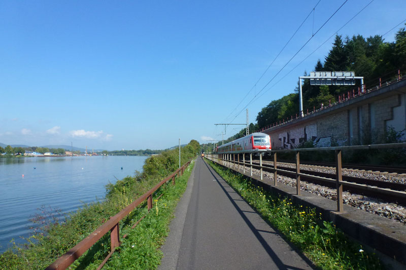 Tals verläuft die Bahn hier direkt neben dem Radweg,