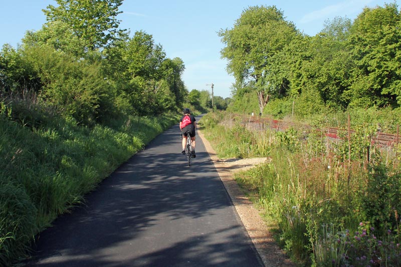 Der Vennbahnradweg ist ca. 3 m breit und hat schönen glatten Asphalt. Die Steigung liegt zwischen 1 und 2 %. - Mai 2014