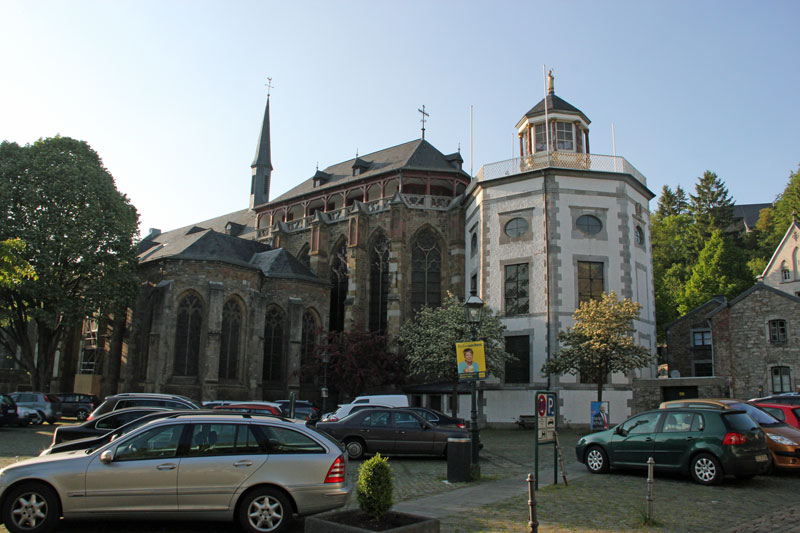 Neben dem Abteigebäude befindet sich die Kloster- und Wallfahrtskirche. - Mai 2014 Abtei Kornelimünster bei Wikipedia - historische Karte der Nordeifel