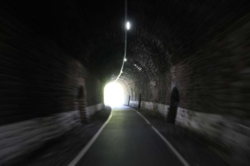 Der Tunnel ist etwa 100 Meter lang und beleuchtet. Wenn man von Prüm weiter nach Osten fährt, wo die Bahntrasse noch nicht als Radweg genutzt werden kann, weiß man welche Strapaze der Tunnel erspart.