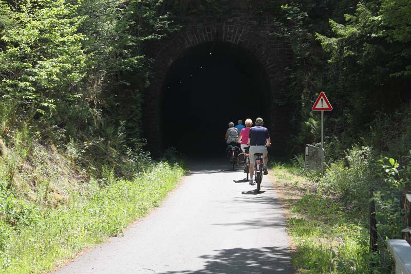 Radfahrer vor dem Tunnel bei Neidingen