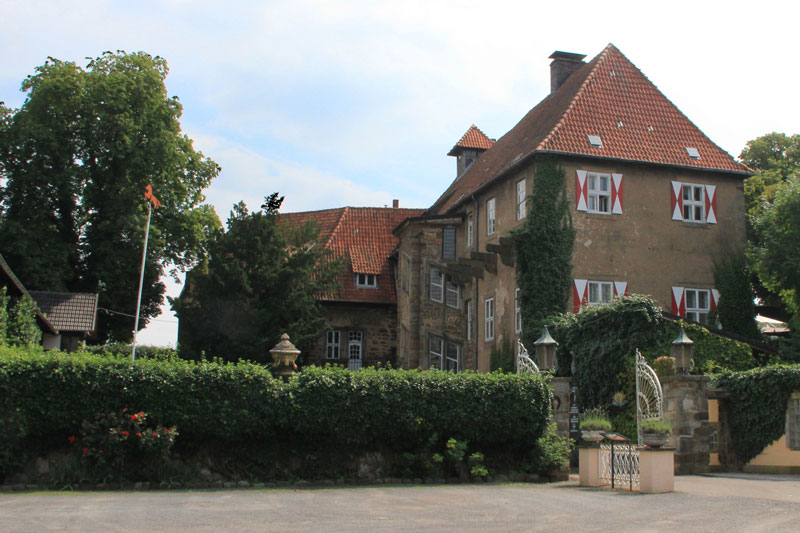 Das aus dem 14. Jahrhundert stammende Wasserschloss Petershagen ist heute ein Hotel und Restaurant Weserradtour - Juli 2014