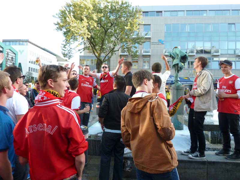 Fußballfans aus London auf dem Alten Markt in Dortmund vor dem Spiel gegen Arsenal - 2011