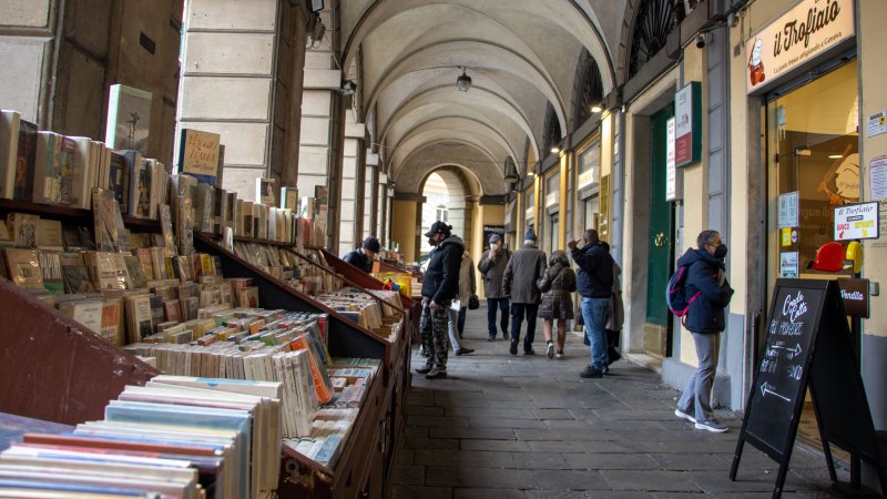 Bücherstände an der Piazza Colombo