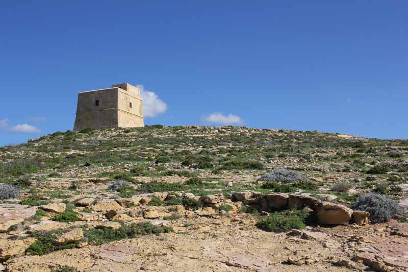 Der Turm bewachte ursprünglich die Küste Gozos, später diente er der Bewachung des Fungus Rock. auf dem seltene Pilze wuchsen, die als Arzneimittel wertvoll waren.