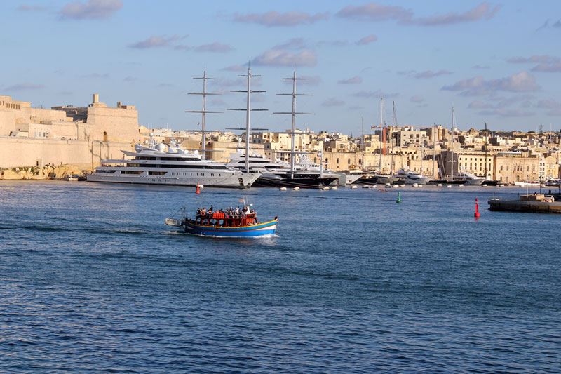 Da man Malteser gegen (viel) Geld werden kann, haben sich hier wohl einige gut Betuchte aus dem Mittleren Osten oder Russland mit ihren Bötchen niedergelassen.