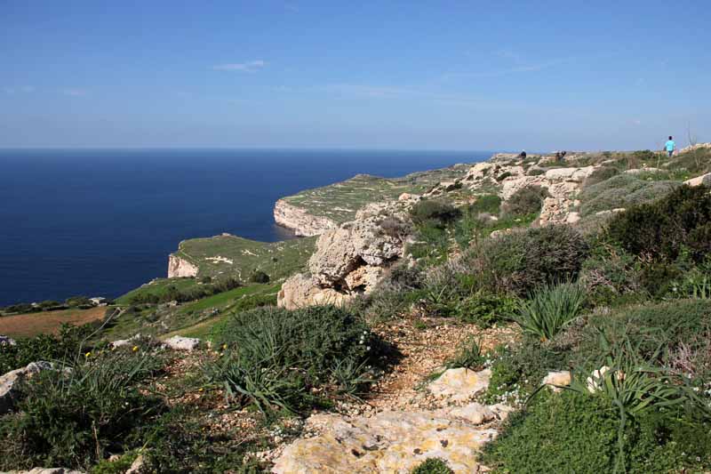 Hier ist nochmals das Kliff mit der Terrasse zu sehen. Das Plateau (rechts) liegt bei 220 m über dem Meer.