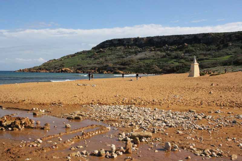 Einer der wenigen Sandstrände der maltesischen Inseln. Der Strand
