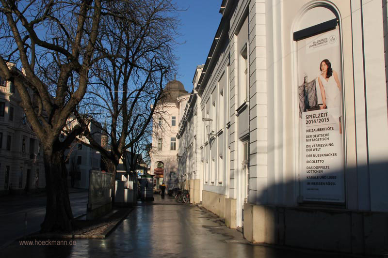 Auf dem Weg vom Hotel zur Innenstadt kamen wir am Stadttheater vorbei. im Winter in Salzburg - Dezember 2014 historische Karte - Salzburg bei Wikipedia