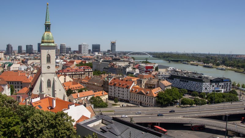 Blick zur Kirche St. Martin und zur Donau in Bratislava
