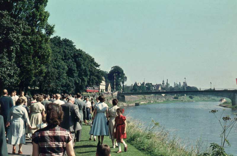 Sonntag im Sommer an der Weserpromenade in Höxter - 1959