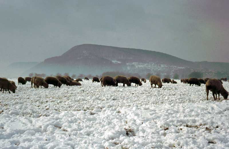 Schafe in der Weseraue bei Höxter - 1973